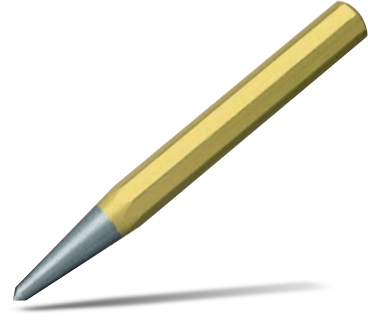 Beschreibung: Kräftiger achtkant-Schaft, Spitze blank. in der ganzen Länge gleichmässig durchgehärtet. Durch speziell vergüteten Schlagkopf kein Absplittern am Körnerkopf.