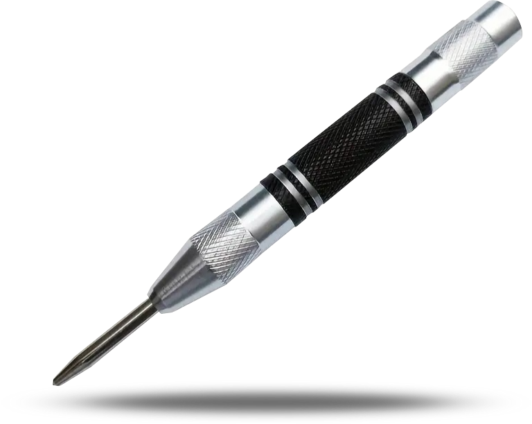Beschreibung: automatischer Federkörner aus Wolframlegierung mit Stahlspitze - federbelastetes Metall-Werkzeug zum einschlagen deiner Steelwallet.